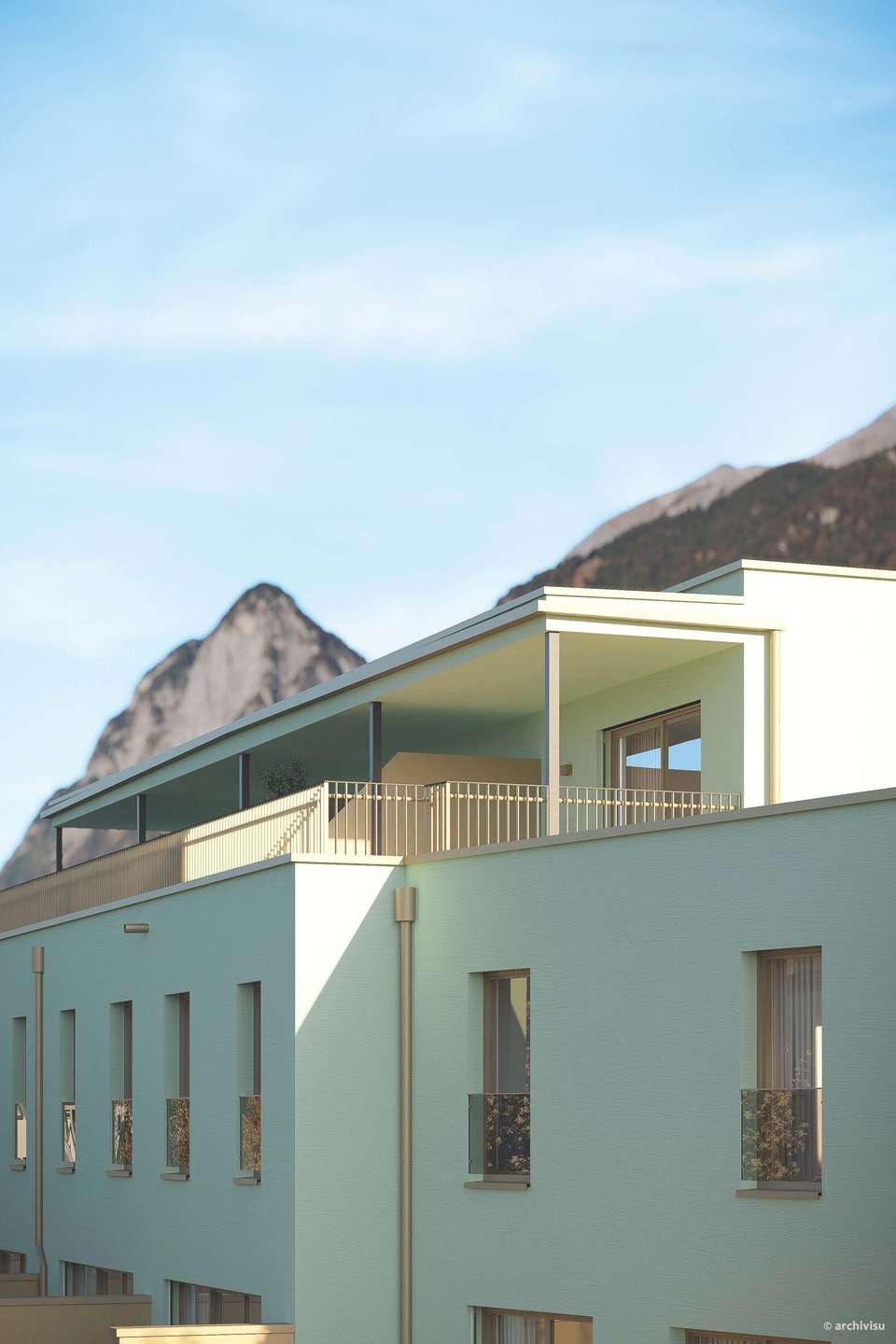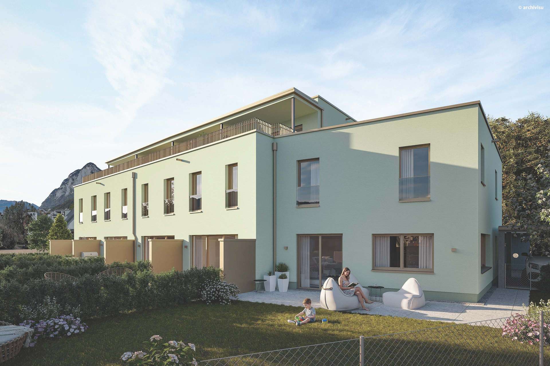 - Zusätzliche Dachterrassen bei den mittleren Häusern