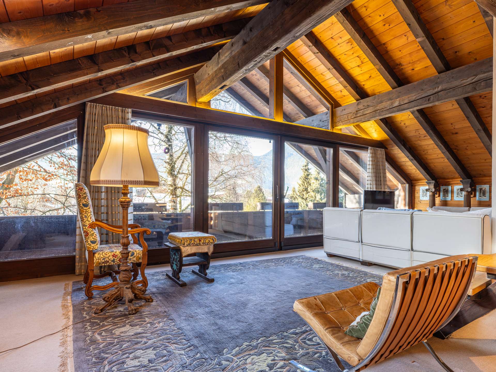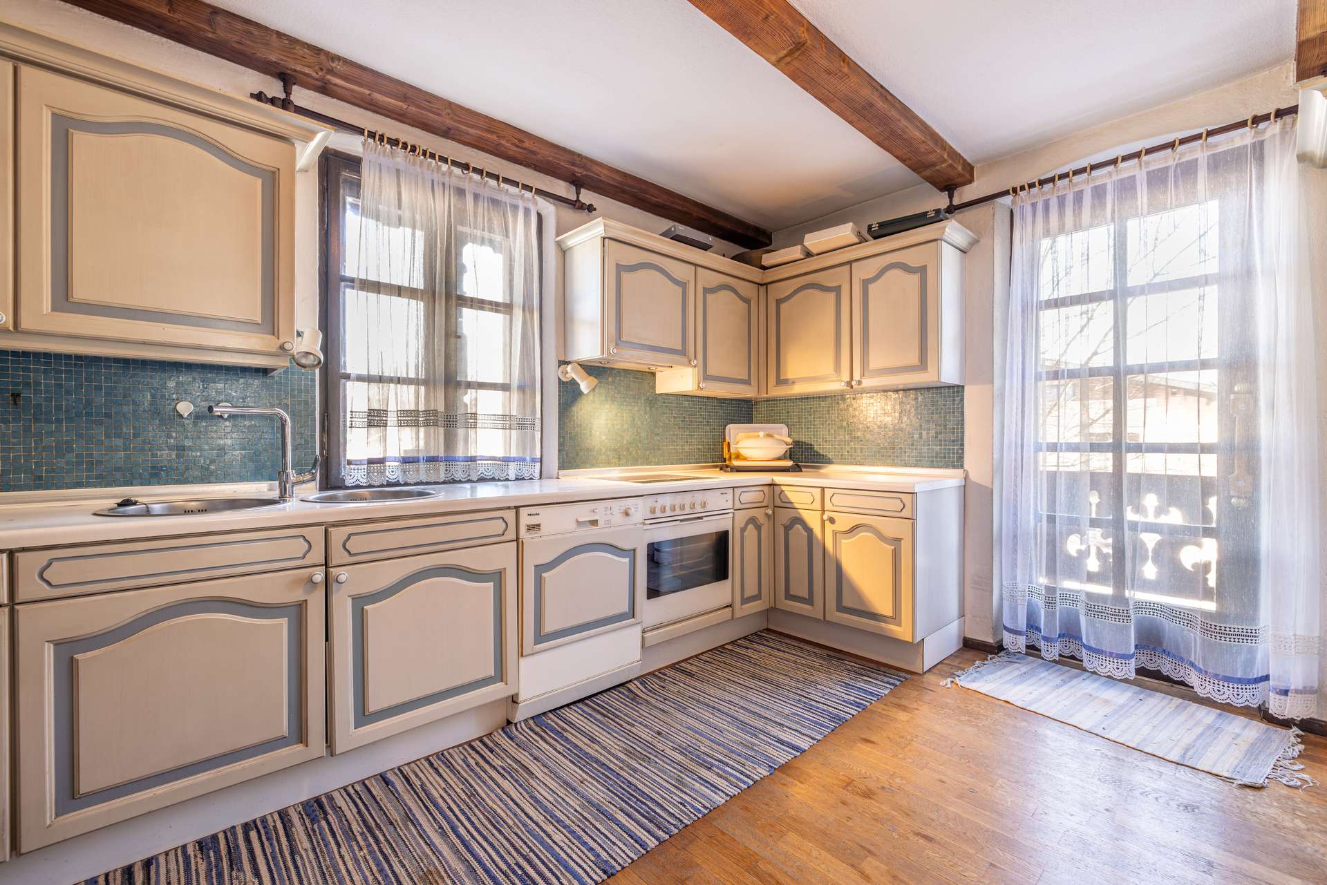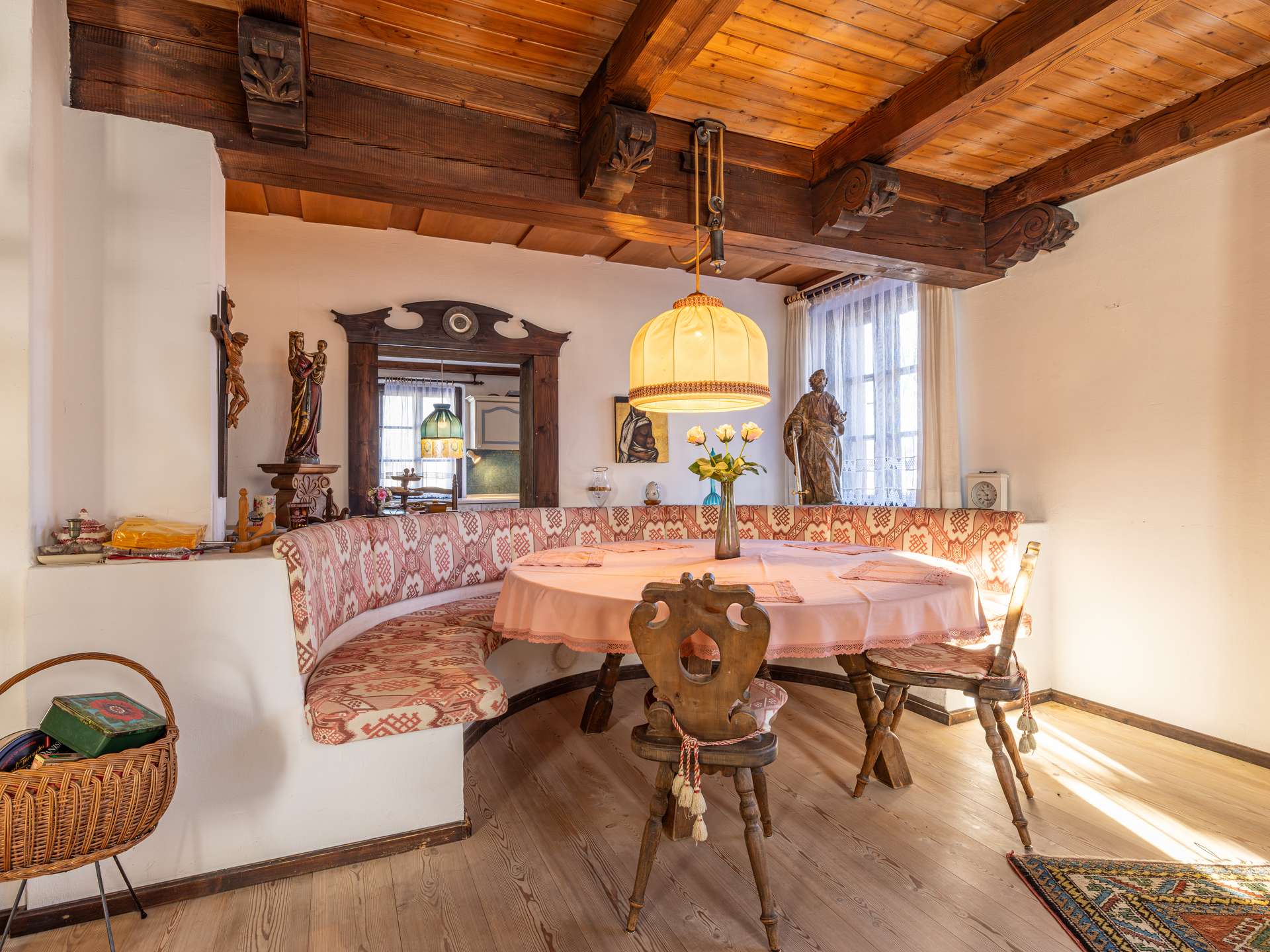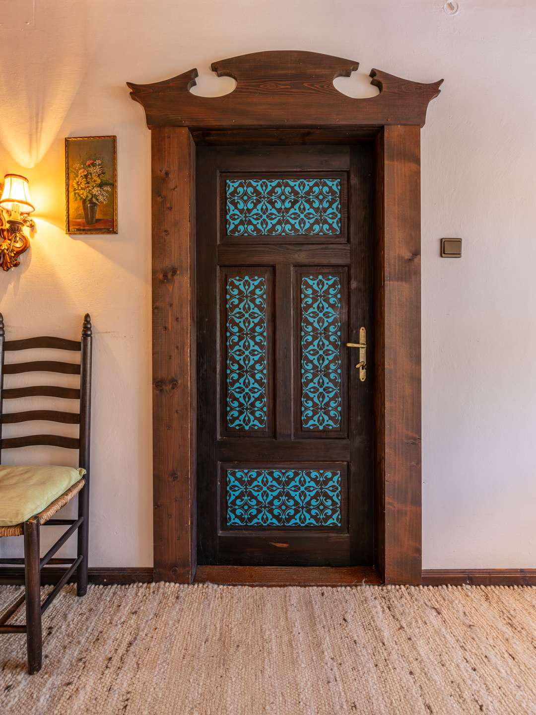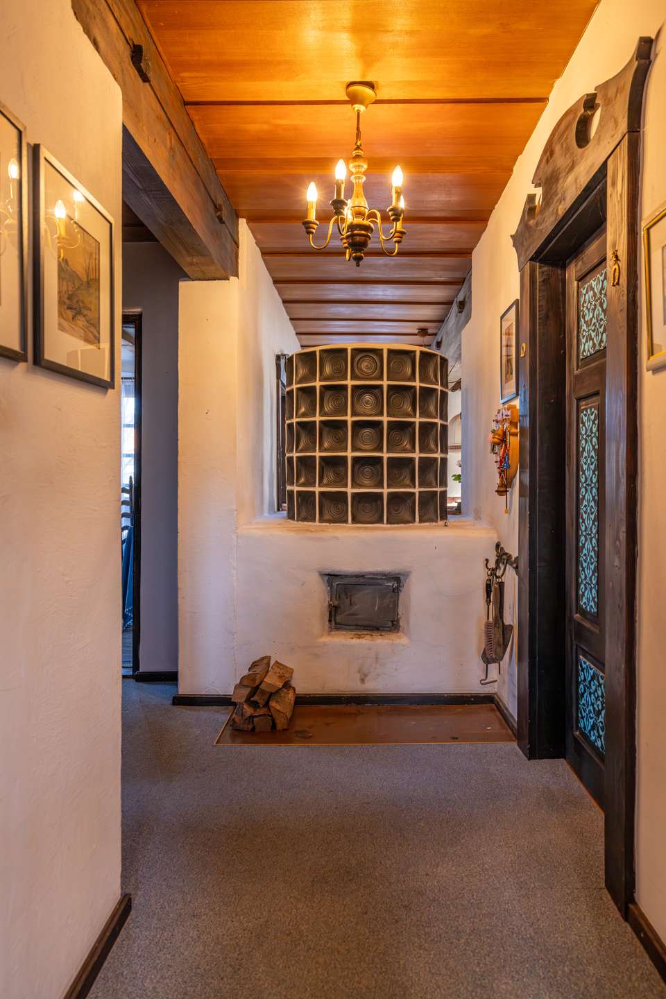 Die Innentüren sind aus Holz und künstlerisch handbemalt, was dem Standard der Errichtungszeit entspricht und es wurde die Heizung erneuert. Mit Fernwärme wird geheizt, zusätzlich gibt es auch noch Holzkamine für lauschige Stunden.